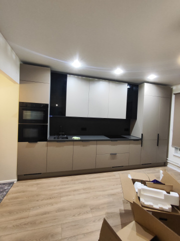Заказ выполнен в срок. На всех этапах отличная работа. Менеджер Светлана помогла выбрать материалы, ответила на все вопросы. Все наши пожелания были учтены. Кухня доставлена в означенное время. Хочется отметить работу мастера-сборщика Ковалегко Александра. Он действительно отличный специалист.Собрал кухню, установил и проверил бытовую технику, оперативно решив возникшую проблему с отводом воды. Работа.выполнена на "отлично". Спасибо всей команде!