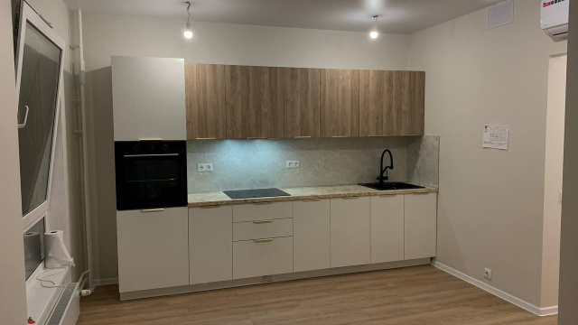 Начала проектировать кухню в декабре, закончила в феврале). Спасибо менеджеру-дизайнеру Марии за терпение и полезные советы). То, что получилось на выходе мне ОЧЕНЬ нравится. Задержек по срокам производства и доставки не было. Достаточно оперативно был назначен день сборки. Отдельное спасибо Дмитрию, работал очень аккуратно и так как у меня неровные стены ему пришлось довести до ума некоторые детали кухонного гарнитура. Результатом довольна. А теперь немного о печальном: 1. То, что кухню придется собирать два дня, узнала это в первый день сборки(может меня и предупреждали на момент проектирования кухни, но к моменту сборки я конечно же забыла об этом). 2. Воспользовалась выгодным предложением и вместе с кухней приобрела мойку Florentina цвет жасмин и технику SchaubLorenz. Мойка- это моя самая неудачная покупка. Я конечно понимала, выбирая светлую, что будет заметна грязь, но что в нее будет все впитываться, если сразу не помыть посуду, я конечно не ожидала. После использования в течении 2-х месяцев мойка выглядет как будто пользовалась ею несколько лет, а мыла всего несколько раз. По технике тоже есть небольшие нарекания. Варочная газовая панель, при увеличении огня, издает какой то свист. А на микроволновке часы, спустя несколько дней, спешат на две минуты, по сравнению с часами на духовке Bosch
