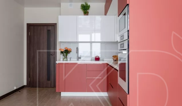 Среди самых популярных вариантов можно выделить сочетание красного и белого. При этом в ярком цвете оформляют нижние шкафы, а верхние фасады окрашивают в белый.