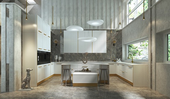 П-образные кухни позволяют отделить пространство с помощью острова или полуострова. Располагаются эти кухни в виде буквы П, т.е. в соответствии с нахождением стен в помещении.