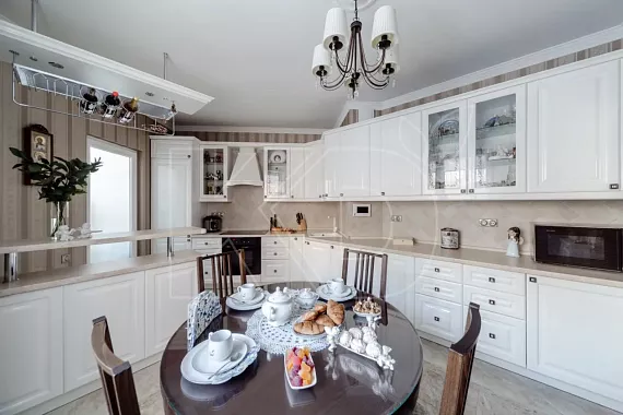Кухни в неоклассическом стиле напоминают классические интерьеры. Но в отличие от них они лишены тяжеловесности, монументальности и показной роскоши. Их отличают четкие линии, выдержанные формы и симметрия.