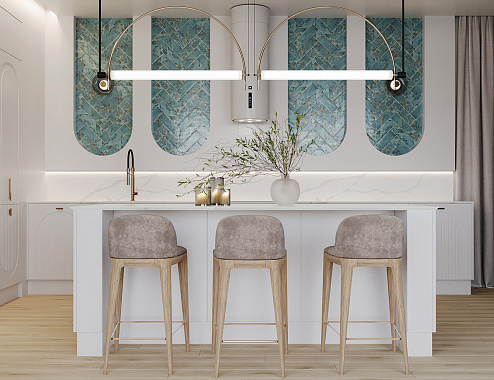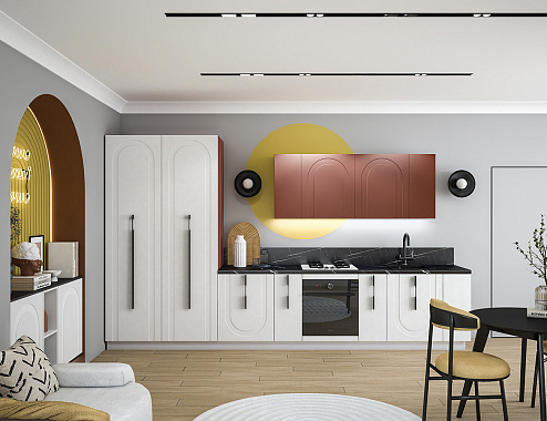 Арочная фрезеровка фасадов — не просто декор, а стилистический код, в котором зашифрованы вечная красота и гармония. Изгибы создают рельеф, в котором играет свет, а тени оживляют поверхность, превращая кухню в часть живого пространства.