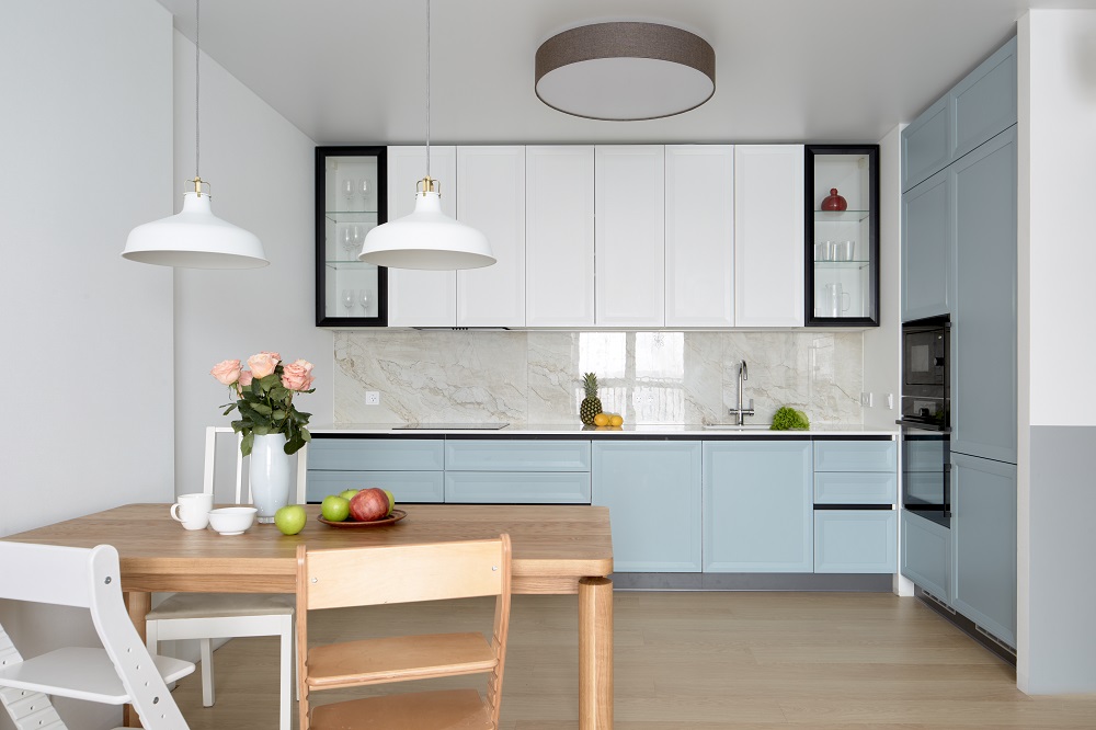 Светлые интерьеры, которые дышат уютом – мечта многих хозяек. Всегда приятно осуществить такую мечту с должным стилем и изяществом! Работая над этим проектом, специалисты КД получили огромное удовольствие, ведь здесь в одной кухне воплотились практически все актуальные тренды.